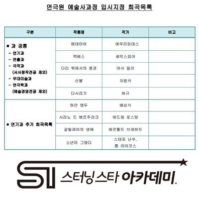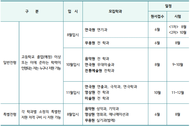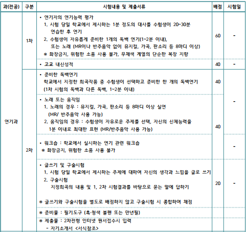 지정희곡과 입시일정 등 모집요강이